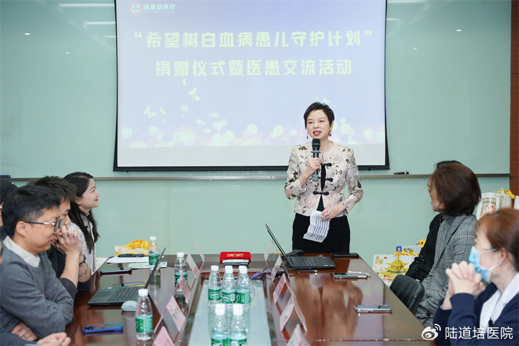 2024年2月2日上午,“希望樹白血病患兒守護計劃”捐贈儀式在河北燕達陸道培醫(yī)院一層會議室召開。陸道培醫(yī)院醫(yī)療執(zhí)行院長陸佩華、血液科張弦主任、楊君芳主任,廣州市紅棉腫瘤和罕見病公益基金會(以下簡稱“紅棉公益基金會”)副理事長&淋巴瘤之家創(chuàng)始人顧洪飛、副秘書長葉云,愛心企業(yè)上海時宜品牌管理有限公司市場部總監(jiān)高承博、外事部負責人陳訓龍,暖白小屋代表等出席捐贈儀式。