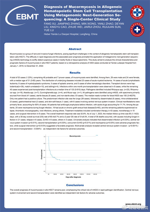 題目:Diagnosis of Mucormycosis in Allogeneic Hematopoietic Stem Cell Transplantation Using Metagenomic Next-Generation Sequencing: A Single-Center Clinical Study