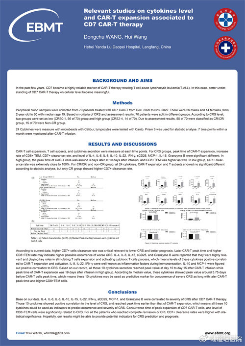 題目:Relevant Studies on Cytokines Level and CAR-T Expansion Associated to CD7 CAR-T Therapy