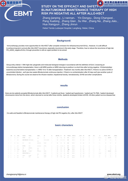 題目:Study on The Efficacy and Safety of Blinatumomab Maintenance Therapy of High Risk Ph Negative ALL after Allo-HSCT