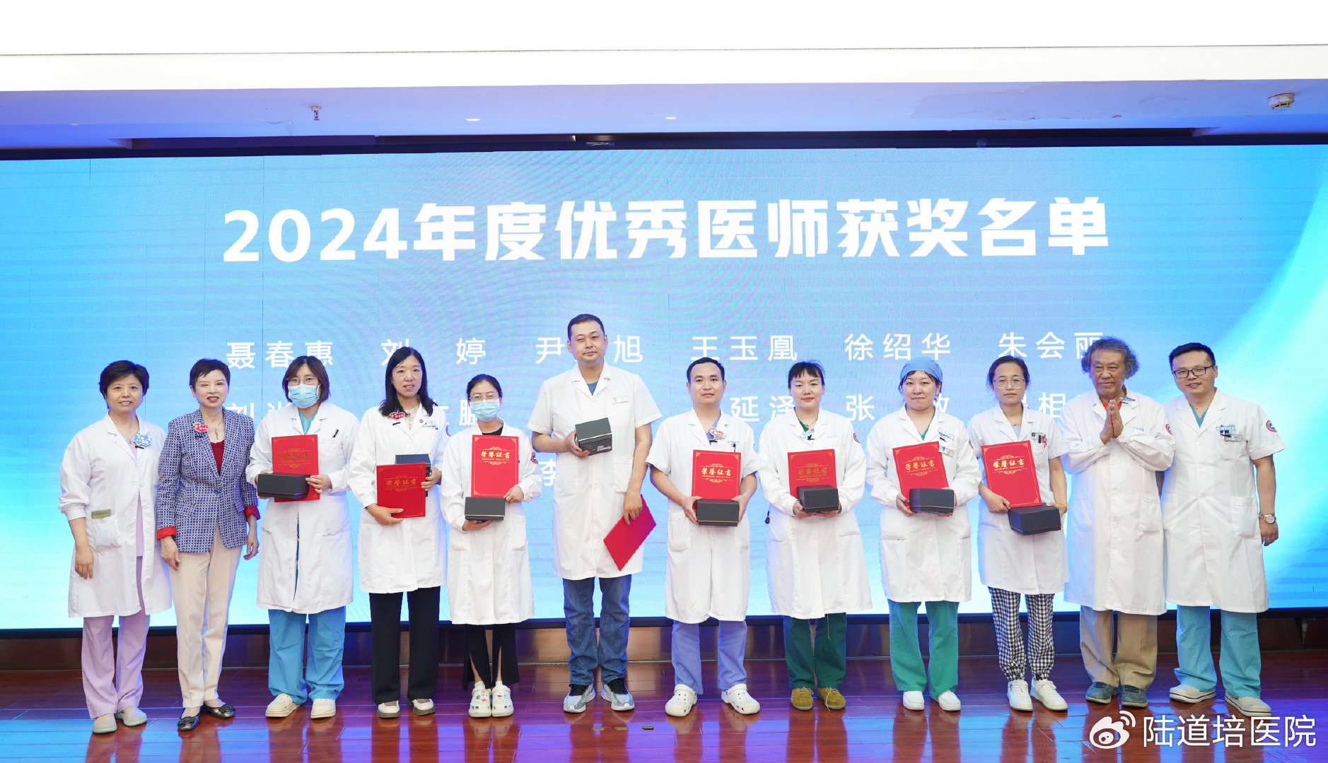 隨后,醫(yī)務(wù)部主任趙薇宣布了2024年優(yōu)秀醫(yī)師獲獎名單,并由黃曉燕院長、王景文院長、孫于謙主任頒發(fā)了證書和獎品。