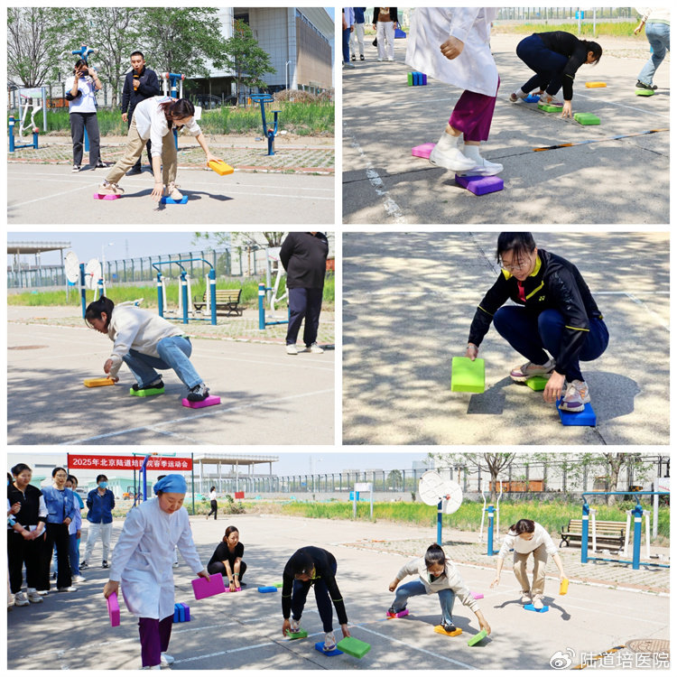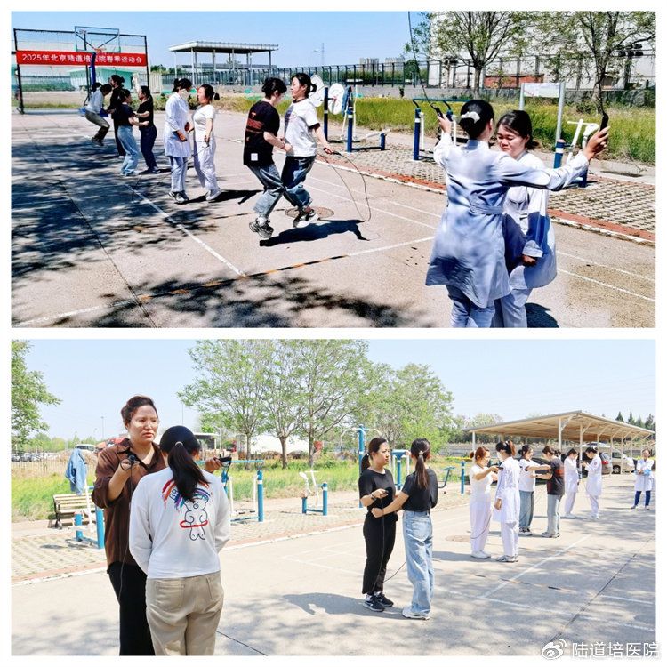 2025 年 4 月 25 日,北京陸道培醫(yī)院(亦莊院區(qū))春季運動會在院內(nèi)籃球場順利舉行。本屆運動會共設(shè)單搖跳繩、雙人跳繩、摸石過河、七人八足、拔河等五個項目,吸引了來自全院臨床、醫(yī)技、行政、后勤的七支代表隊,90 余人踴躍參與。